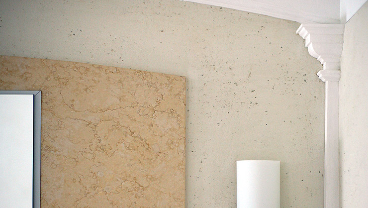 Detail Natursteinplatte, Oberflächentechnik Terra Stone und Stuckeckpilaster