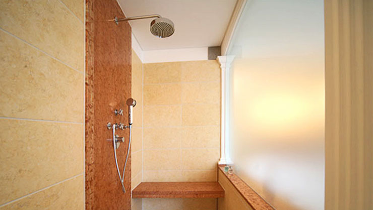 Duschbereich mit satinierter Glasscheibe zum Whirlpool
