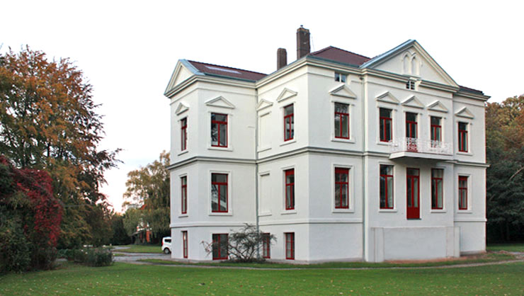 Herrenhaus nach ausgeführten Abbeiz-, Stuckrestaurierungs- und Malerarbeiten