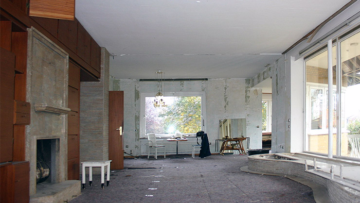 Wohnzimmer vor Beginn der Ausführung der Stuck-, Maler- und Tapezierarbeiten