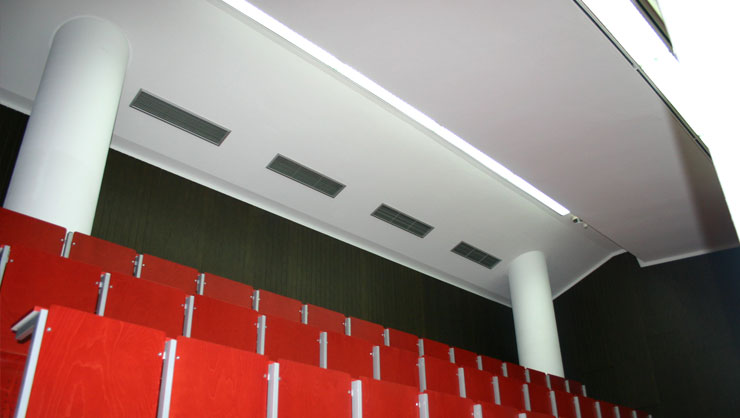 Abgetreppte Rabitzdecke mit dem Anschlussbereich der Säulen und Belüftung