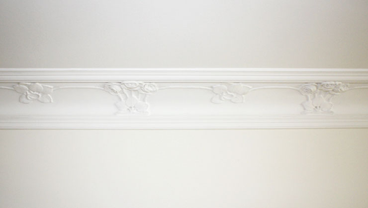 Detailansicht des Judendstilprofils im Esszimmer mit Leimfarbenanstrich