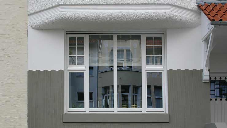 Scharrierputzarbeit unterhalb des Erkers