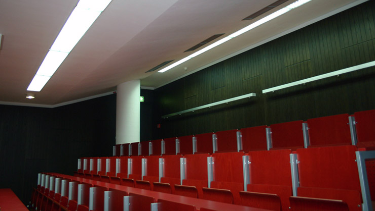 Seitenansicht der Rabitzfaltendecke mit eingebauten Beleuchtungselementen