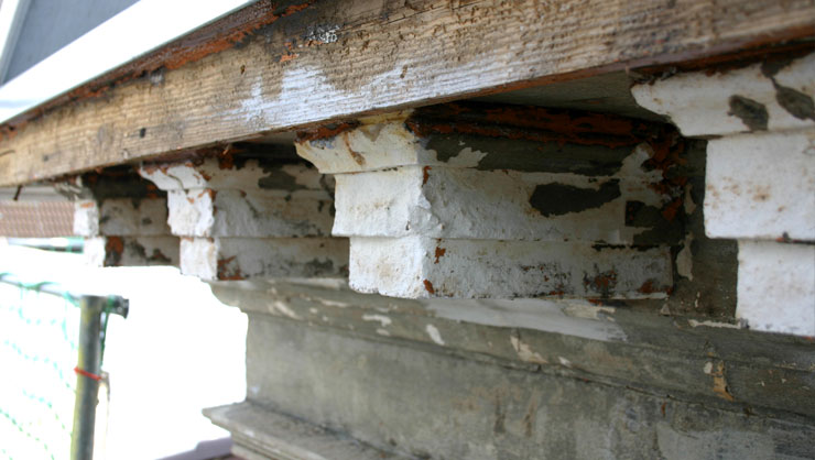 Konsolen des Giebeldreiecks vor der Restaurierung